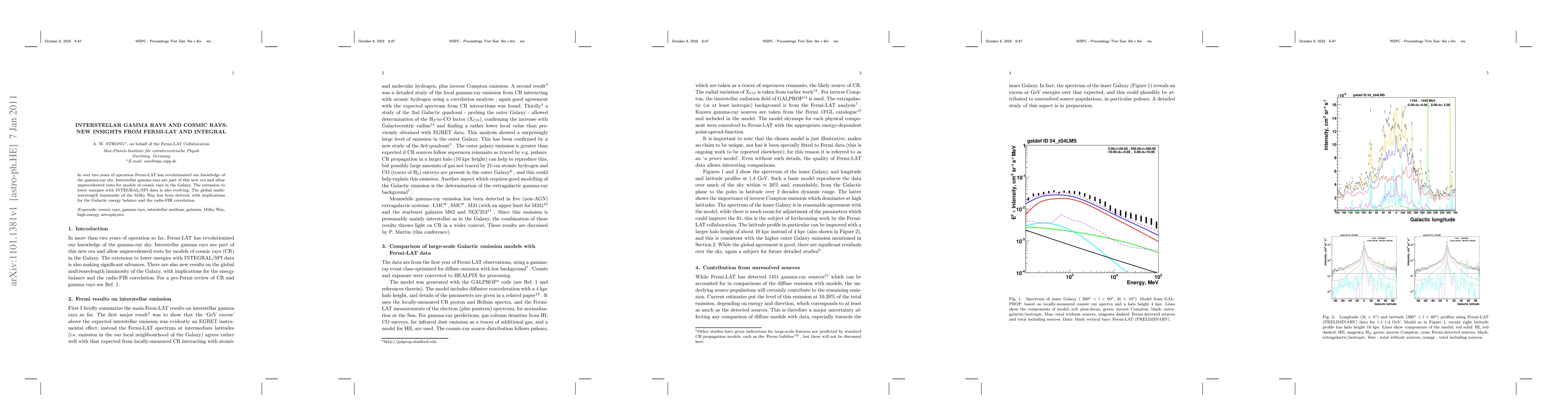 In over two years of operation Fermi-LAT has revolutionized our knowledge of the gamma-ray sky. Interstellar gamma rays are part of this new era and allow unprecedented tests for models of cosmic rays in the Galaxy. The extension to lower energies with INTEGRAL/SPI data is also evolving. The global multiwavelength luminosity of the Milky Way has been derived, with implications for the Galactic energy balance and the radio-FIR correlation.