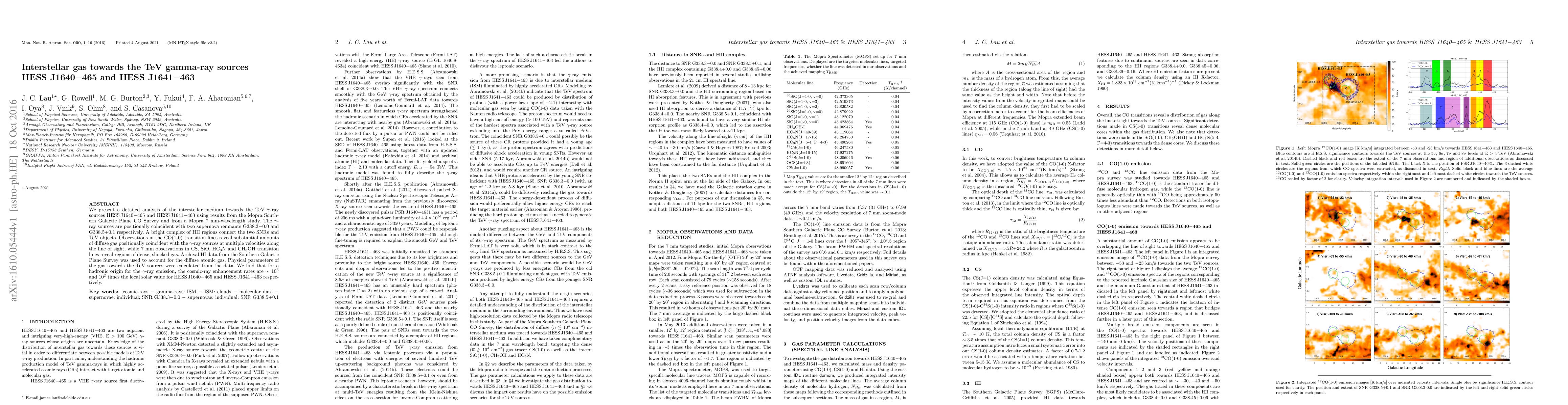The research utilized data from the Mopra Radio Telescope at 3mm and 7mm wavelengths, along with archival HI data from the Southern Galactic Plane Survey to analyze the interstellar medium towards TeV gamma-ray sources HESS J1640-465 and HESS J1641-463.