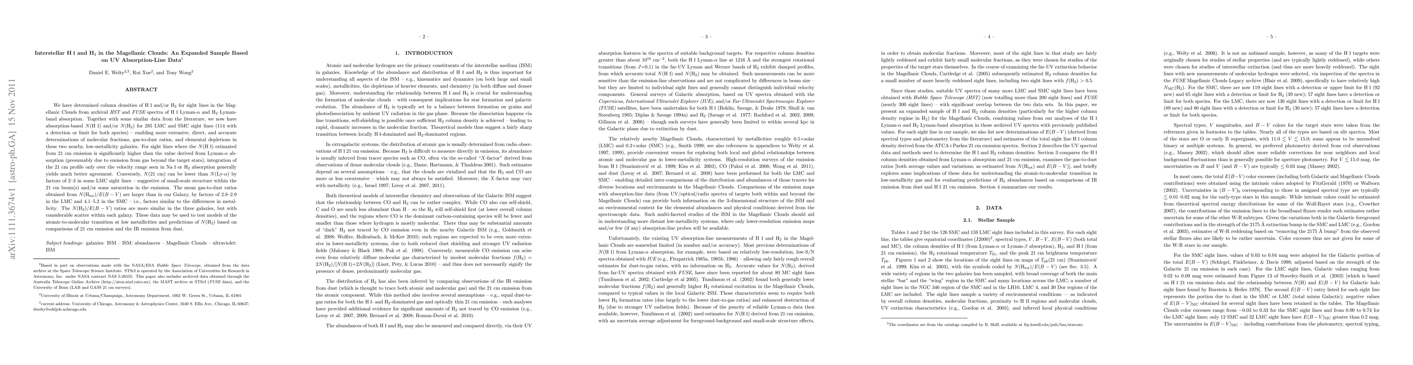 This study expands on gas column densities in Magellanic Clouds using UV absorption-line data, revealing higher gas-to-dust ratios and molecular fractions than our Galaxy, with implications for atomic-to-molecular transition models.