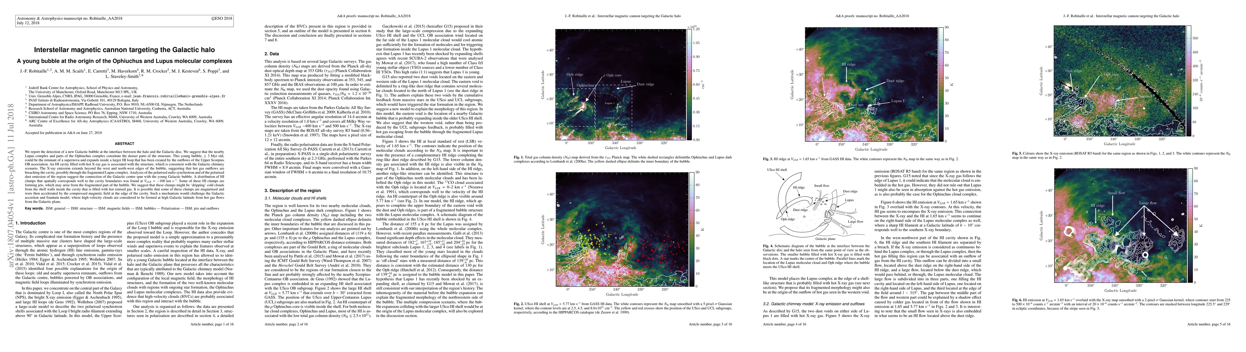 We report the detection of a new Galactic bubble at the interface between the halo and the Galactic disc. We suggest that the nearby Lupus complex and parts of the Ophiuchus complex constitute the denser parts of the structure. This young bubble, < 3 Myr old, could be the remnant of a supernova and expands inside a larger HI loop that has been created by the outflows of the Upper Scorpius OB association. An HI cavity filled with hot X-ray gas is associated with the structure, which is consistent with the Galactic chimney scenario. The X-ray emission extends beyond the west and north-west edges of the bubble, suggesting that hot gas outflows are breaching the cavity, possibly through the fragmented Lupus complex. Analyses of the polarised radio synchrotron and of the polarised dust emission of the region suggest the connection of the Galactic centre spur with the young Galactic bubble. A distribution of HI clumps that spatially corresponds well to the cavity boundaries was found at V_LSR ~ -100 km/s. Some of these HI clumps are forming jets, which may arise from the fragmented part of the bubble. We suggest that these clumps might be `dripping' cold clouds from the shell walls inside the cavity that is filled with hot ionised gas. It is possible that some of these clumps are magnetised and were then accelerated by the compressed magnetic field at the edge of the cavity. Such a mechanism would challenge the Galactic accretion and fountain model, where high-velocity clouds are considered to be formed at high Galactic latitude from hot gas flows from the Galactic plane.