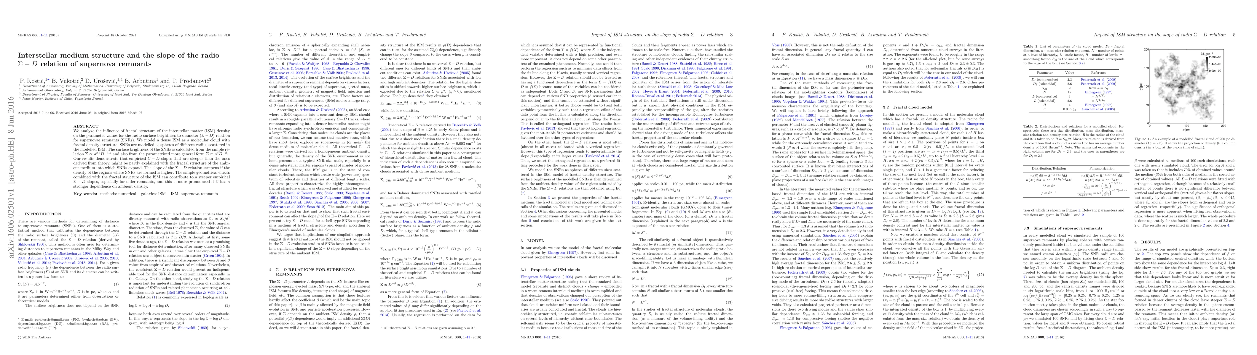 We analyze the influence of fractal structure of the interstellar matter (ISM) density on the parameter values for the radio surface brightness to diameter ($\Sigma-D$) relation for supernovae remnants (SNRs). We model a dense ISM as a molecular cloud with fractal density structure. SNRs are modelled as spheres of different radius scattered in the modelled ISM. The surface brightness of the SNRs is calculated from the simple relation $\Sigma \propto \rho^{0.5}D^{-3.5}$ and also from the parametrized more general form $\Sigma \propto \rho^{\eta}D^{-\beta_0}$. Our results demonstrate that empirical $\Sigma-D$ slopes that are steeper than the ones derived from theory, might be partly explained with the fractal structure of the ambient medium into which SNRs expand. The slope of the $\Sigma-D$ relation steepens if the density of the regions where SNRs are formed is higher. The simple geometrical effects combined with the fractal structure of the ISM can contribute to a steeper empirical $\Sigma-D$ slopes, especially for older remnants, and this is more pronounced if $\Sigma$ has a stronger dependence on ambient density.