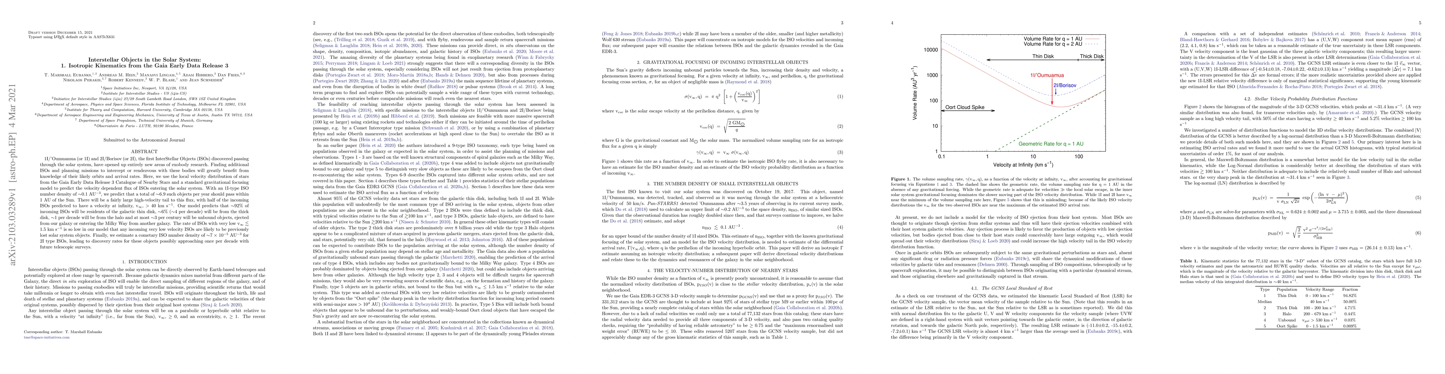 A study predicts that about 6.9 interstellar objects (ISOs) per year will pass within 1 AU of the Sun, with most being residents of the galactic thin disk or thick disk.