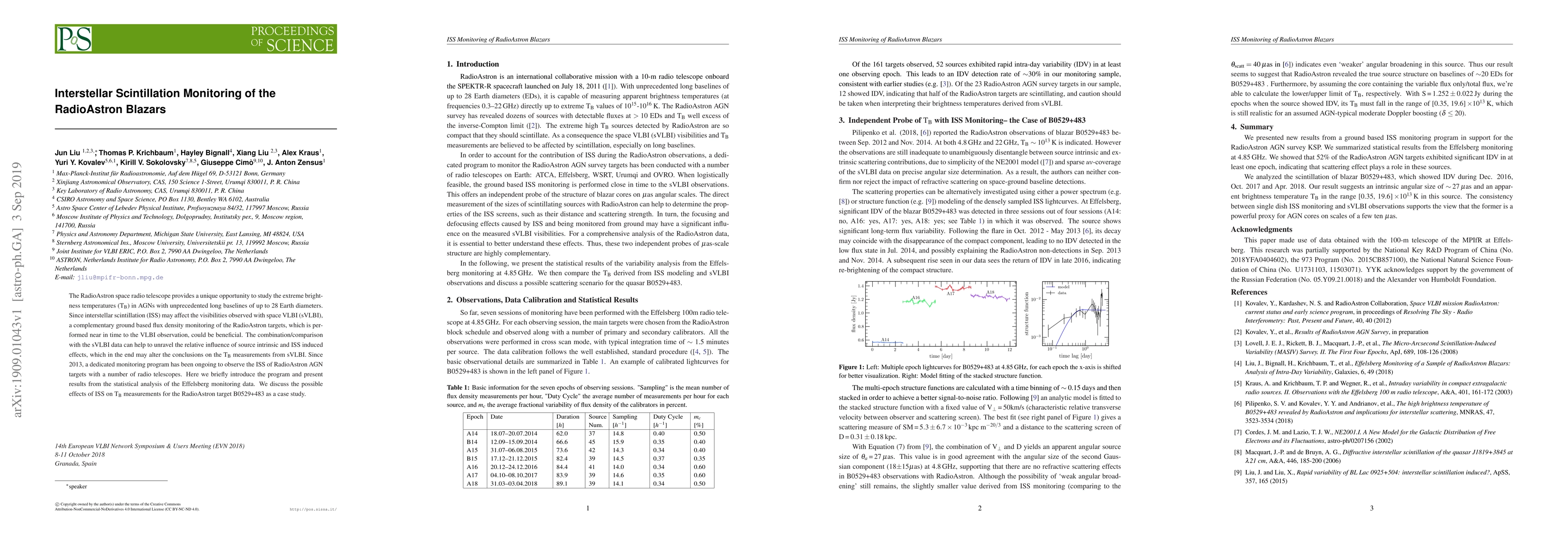 This study monitors interstellar scintillation effects on RadioAstron blazars to improve brightness temperature measurements, using ground-based flux density data in tandem with space VLBI observations.