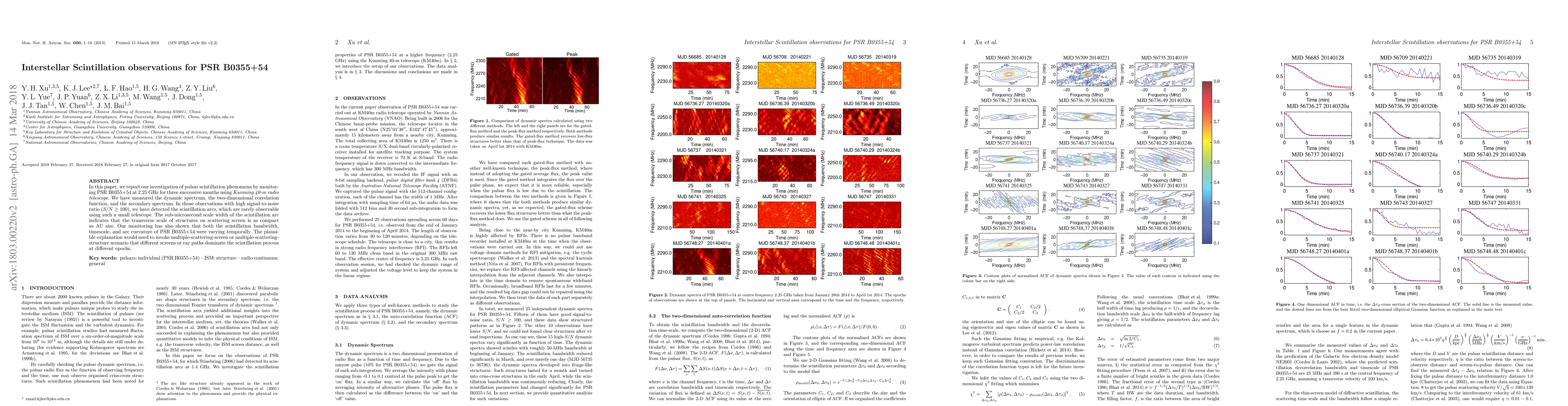 In this paper, we report our investigation of pulsar scintillation phenomena by monitoring PSR B0355$+$54 at 2.25 GHz for three successive months using \emph{Kunming 40-m radio telescope}. We have measured the dynamic spectrum, the two-dimensional correlation function, and the secondary spectrum. In those observations with high signal-to-noise ratio ($S/N\ge100$), we have detected the scintillation arcs, which are rarely observable using such a small telescope. The sub-microsecond scale width of the scintillation arc indicates that the transverse scale of structures on scattering screen is as compact as AU size. Our monitoring has also shown that both the scintillation bandwidth, timescale, and arc curvature of PSR B0355$+$54 were varying temporally. The plausible explanation would need to invoke multiple-scattering-screen or multiple-scattering-structure scenario that different screens or ray paths dominate the scintillation process at different epochs.