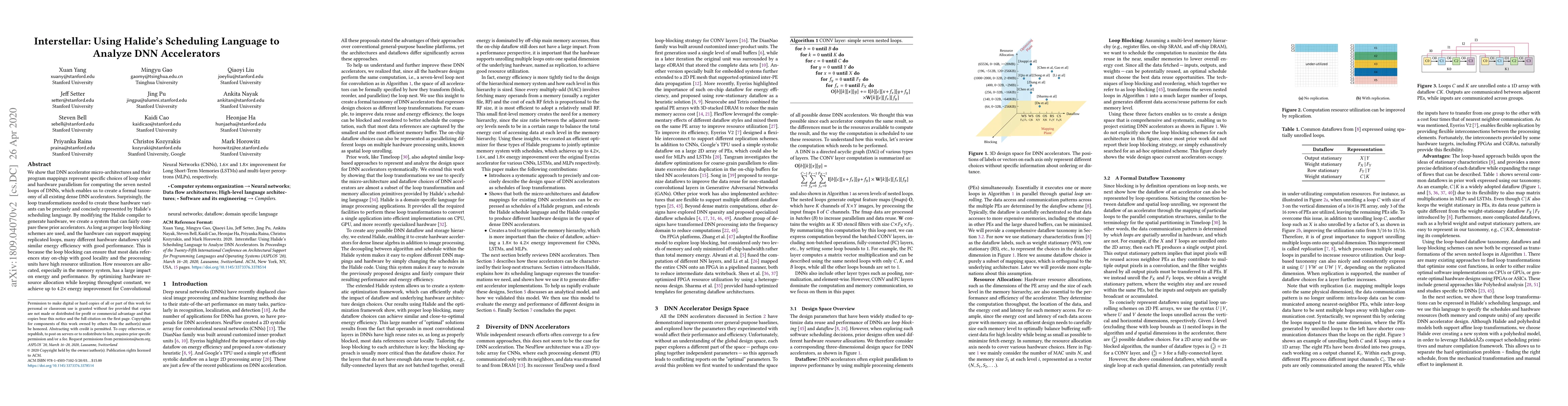 This paper uses Halide's scheduling language to analyze and compare different DNN accelerator designs, achieving up to 4.2X energy improvement for CNNs while maintaining performance.
