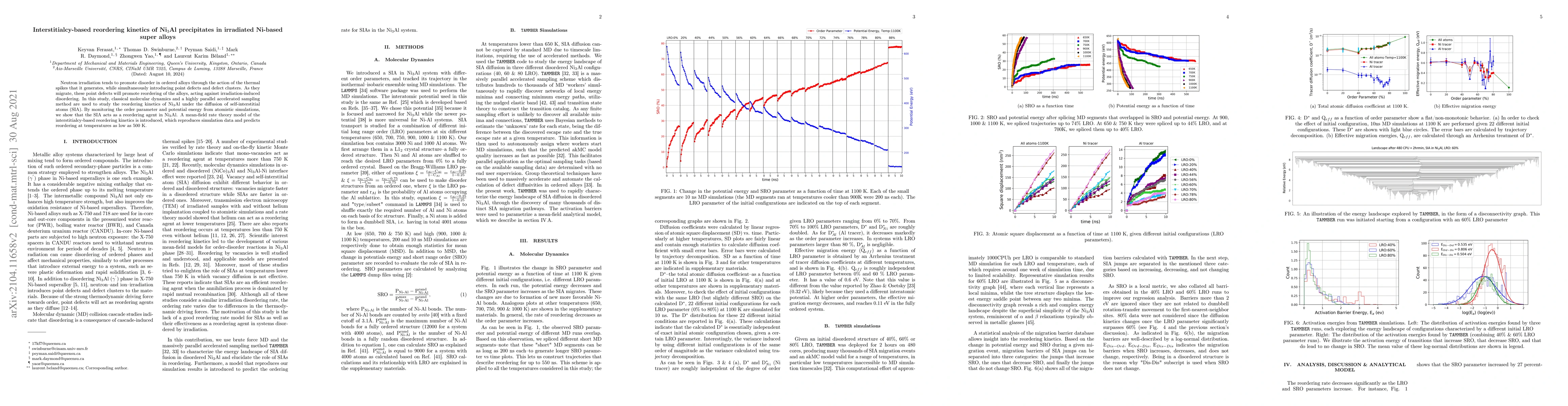 Neutron irradiation tends to promote disorder in ordered alloys through the action of the thermal spikes that it generates, while simultaneously introducing point defects and defect clusters. As they migrate, these point defects will promote reordering of the alloys, acting against irradiation-induced disordering. In this study, classical molecular dynamics and a highly parallel accelerated sampling method are used to study the reordering kinetics of Ni$_3$Al under the diffusion of self-interstitial atoms (SIA). By monitoring the order parameter and potential energy from atomistic simulations, we show that the SIA acts as a reordering agent in Ni$_3$Al. A mean-field rate theory model of the interstitialcy-based reordering kinetics is introduced, which reproduces simulation data and predicts reordering at temperatures as low as 500 K.