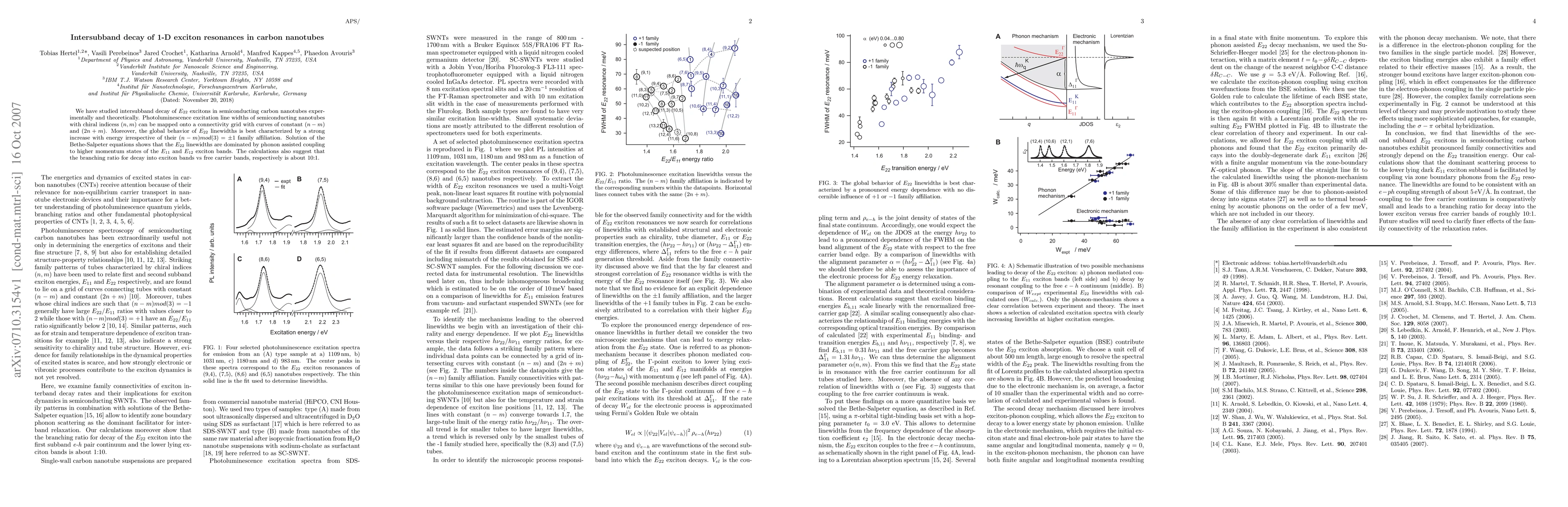 We have studied intersubband decay of E22 excitons in semiconducting carbon nanotubes experimentally and theoretically. Photoluminescence excitation line widths of semiconducting nanotubes with chiral indicess (n, m) can be mapped onto a connectivity grid with curves of constant (n-m) and (2n+m). Moreover, the global behavior of E22 linewidths is best characterized by a strong increase with energy irrespective of their (n-m) mod(3)= \pm 1 family affiliation. Solution of the Bethe-Salpeter equations shows that the E22 linewidths are dominated by phonon assisted coupling to higher momentum states of the E11 and E12 exciton bands. The calculations also suggest that the branching ratio for decay into exciton bands vs free carrier bands, respectively is about 10:1.