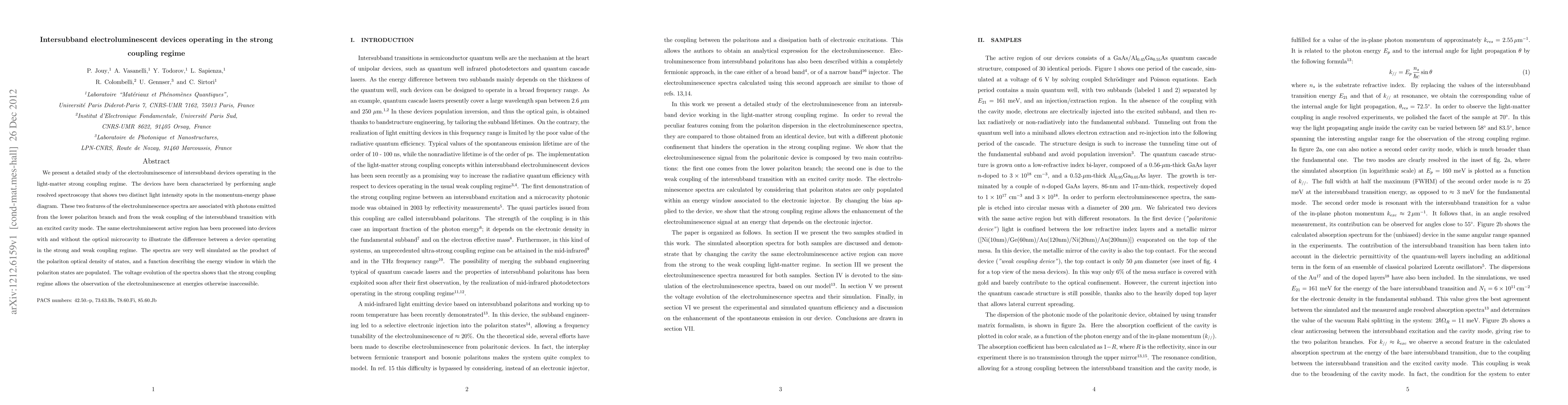This research investigates intersubband electroluminescent devices in the strong coupling regime, revealing distinct light spots in spectroscopy linked to lower polariton emissions. The study contrasts devices with and without optical microcavities, demonstrating significant spectral changes due to strong coupling, allowing access to previously inaccessible electroluminescence energies.