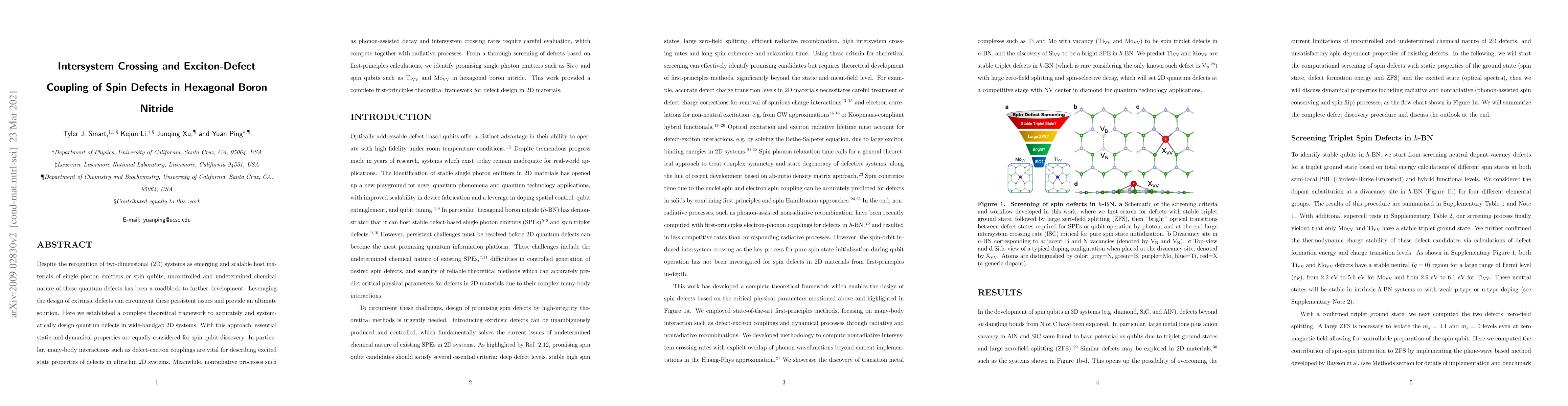 This paper develops a comprehensive theoretical framework for designing quantum defects in hexagonal boron nitride, focusing on intersystem crossing and exciton-defect coupling. It identifies promising single photon emitters and spin qubits, such as SiVV, TiVV, and MoVV, using first-principles calculations.