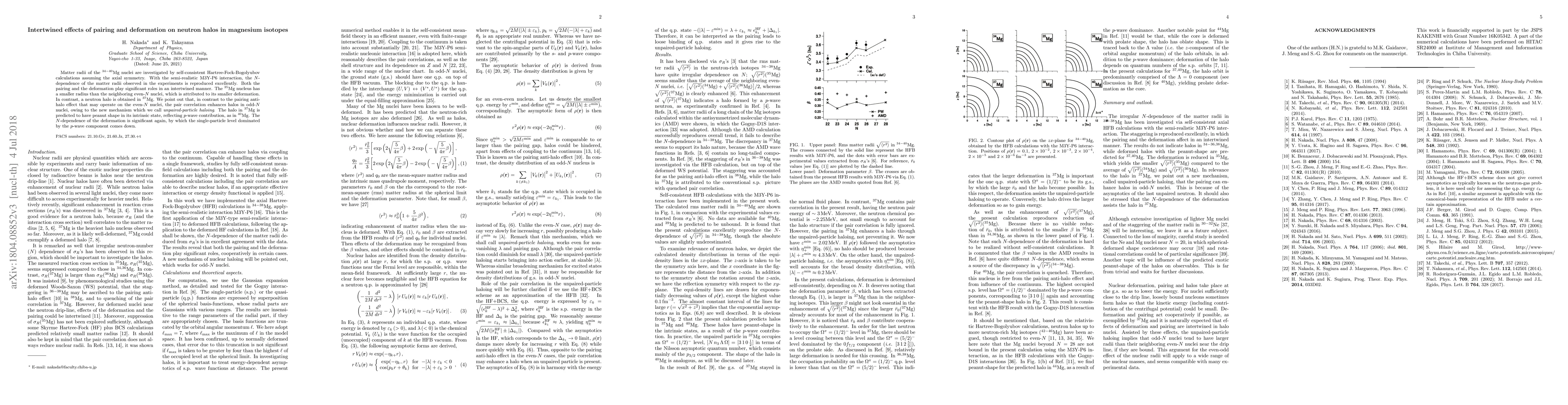 This study investigates the matter radii of magnesium isotopes using self-consistent Hartree-Fock-Bogolyubov calculations, revealing that both pairing and deformation significantly influence neutron halos. The $^{35}$Mg nucleus exhibits a smaller radius due to reduced deformation, while $^{37}$Mg displays a neutron halo, demonstrating the unpaired-particle haloing mechanism.