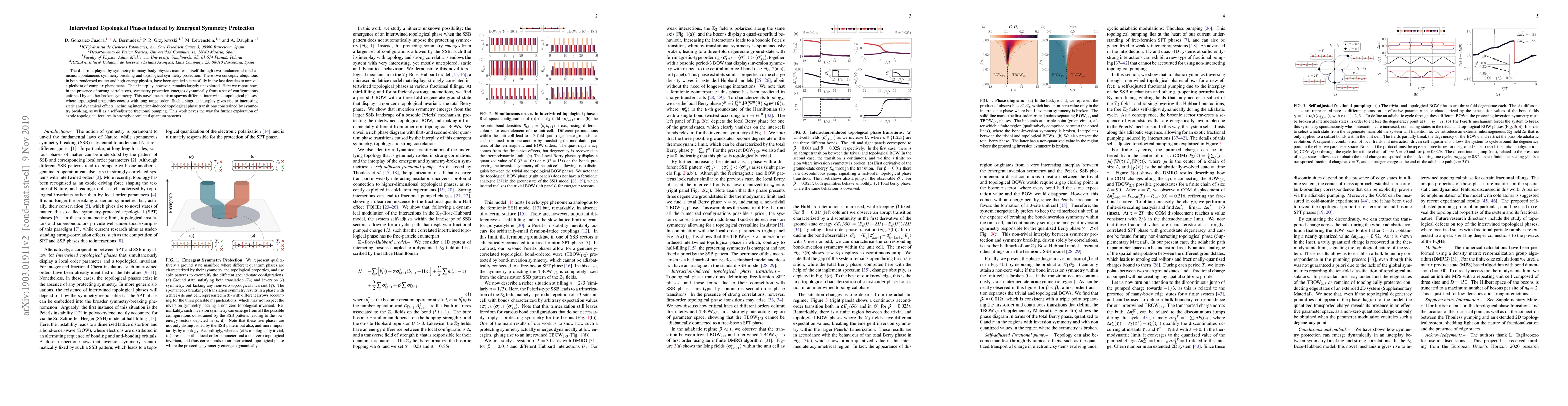 This paper explores how emergent symmetry protection, driven by a broken symmetry, leads to intertwined topological phases in strongly correlated quantum systems, revealing novel topological and dynamical effects. The findings suggest a new mechanism for interaction-induced topological phase transitions and fractional pumping.