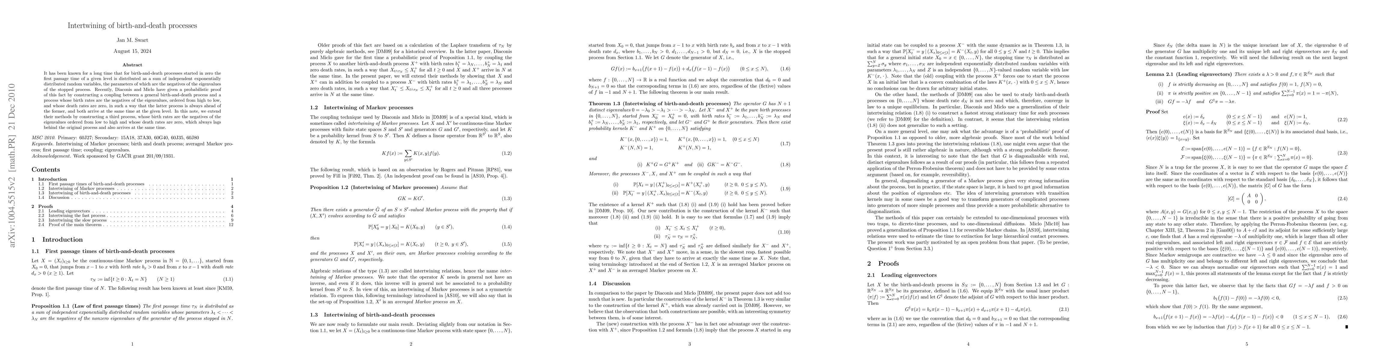 This paper extends the coupling methods of Diaconis and Miclo to birth-and-death processes, constructing a third process that lags behind the original one, both arriving at a given level simultaneously. This intertwining provides deeper insights into the probabilistic structure of these processes.