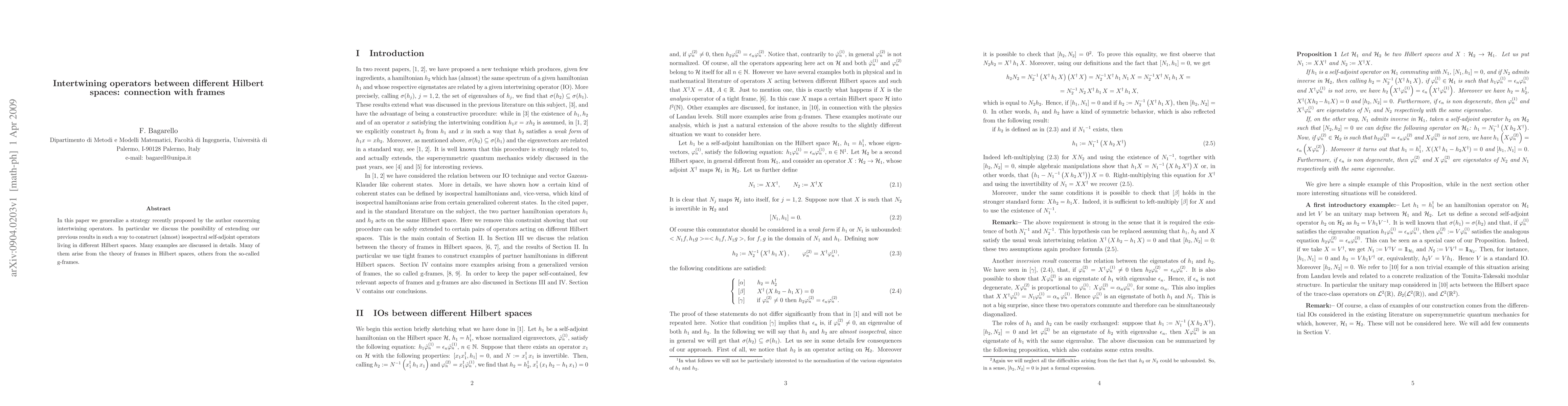 In this paper we generalize a strategy recently proposed by the author concerning intertwining operators. In particular we discuss the possibility of extending our previous results in such a way to construct (almost) isospectral self-adjoint operators living in different Hilbert spaces. Many examples are discussed in details. Many of them arise from the theory of frames in Hilbert spaces, others from the so-called g-frames.