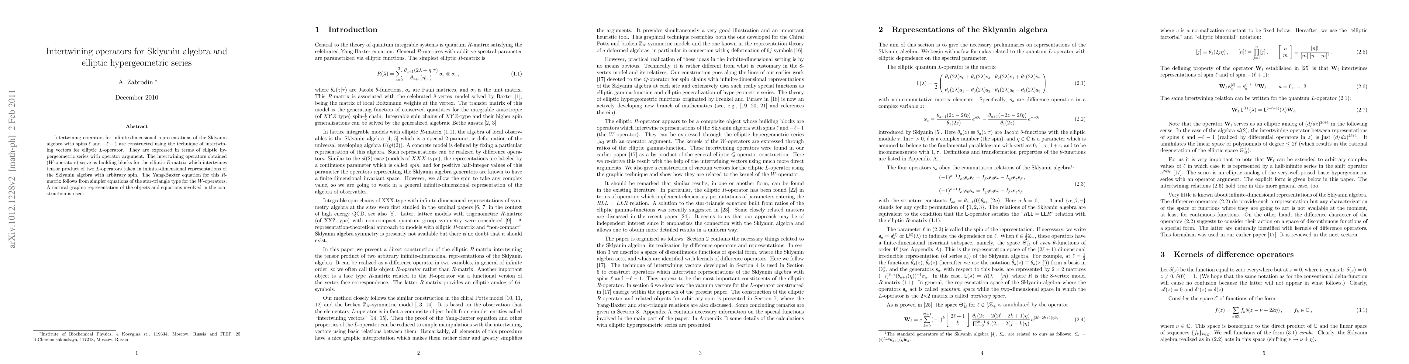 This paper constructs intertwining operators for infinite-dimensional representations of the Sklyanin algebra using elliptic hypergeometric series, serving as building blocks for the elliptic R-matrix. The Yang-Baxter equation for the R-matrix is derived from simpler star-triangle equations for the W-operators.