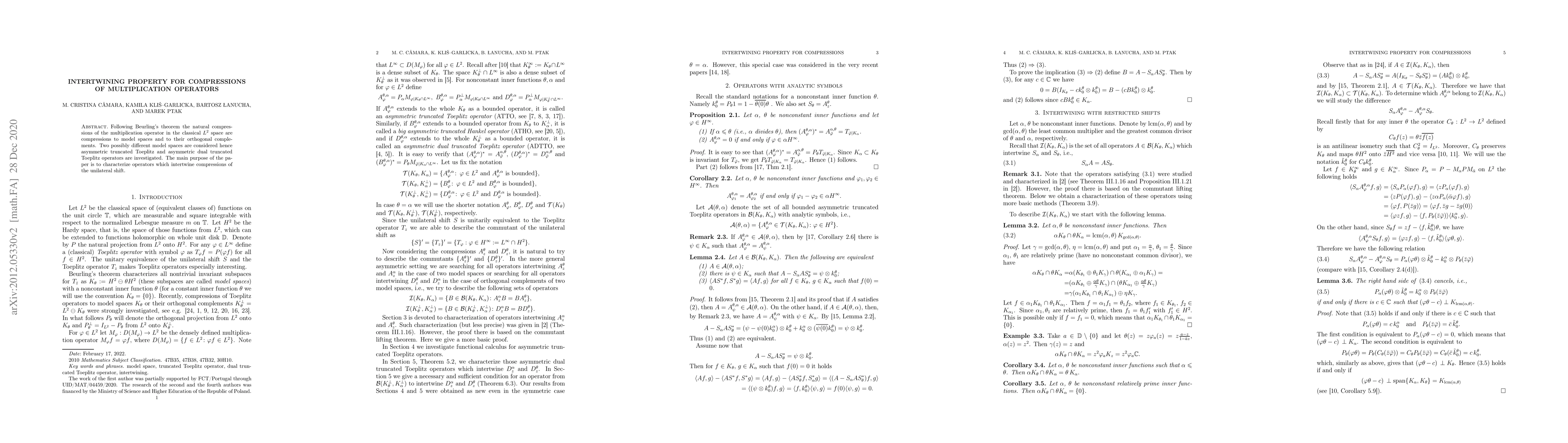 Researchers investigated how certain operators intertwine compressions of the multiplication operator in a mathematical space, focusing on key findings about asymmetric truncated Toeplitz operators and their implications for modeling.