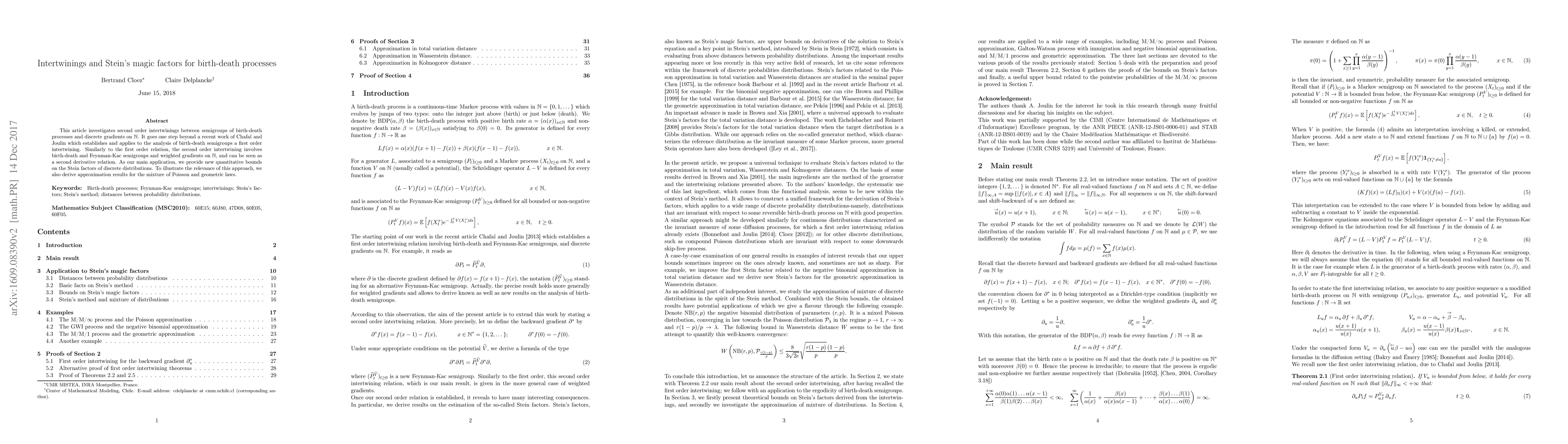 This paper explores second-order intertwinings between birth-death process semigroups and discrete gradients, extending previous first-order intertwinings. It provides new quantitative bounds on Stein factors and illustrates its utility through approximations for mixtures of Poisson and geometric distributions.