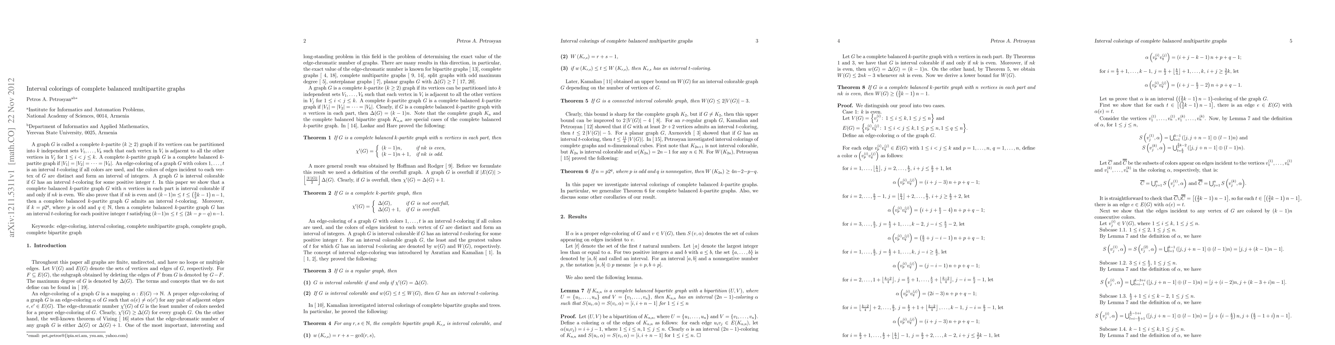 This paper investigates the interval coloring of complete balanced multipartite graphs, proving that such graphs are interval colorable if the product of the number of vertices per part and the number of parts is even. It also provides specific bounds for the number of colors required for interval coloring under these conditions.