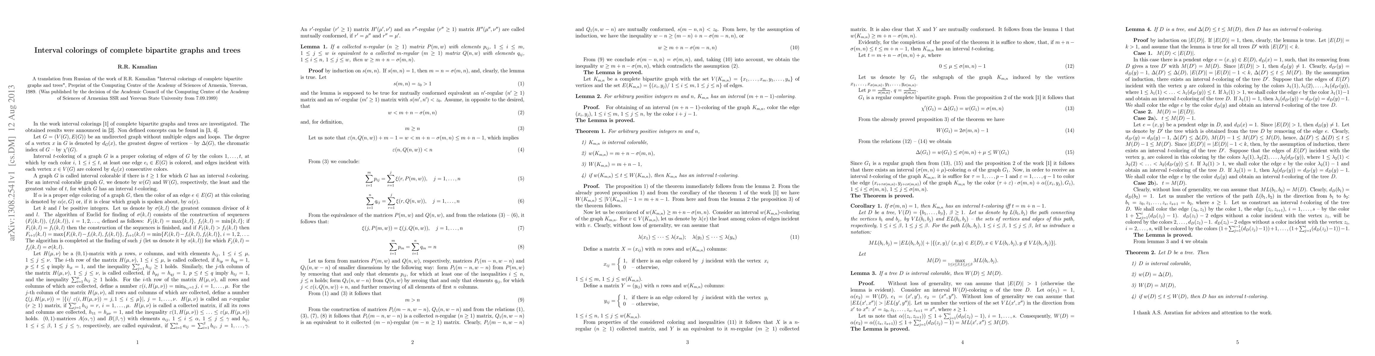 A translation from Russian of the work of R.R. Kamalian "Interval colorings of complete bipartite graphs and trees", Preprint of the Computing Centre of the Academy of Sciences of Armenia, Yerevan, 1989. (Was published by the decision of the Academic Council of the Computing Centre of the Academy of Sciences of Armenian SSR and Yerevan State University from 7.09.1989).