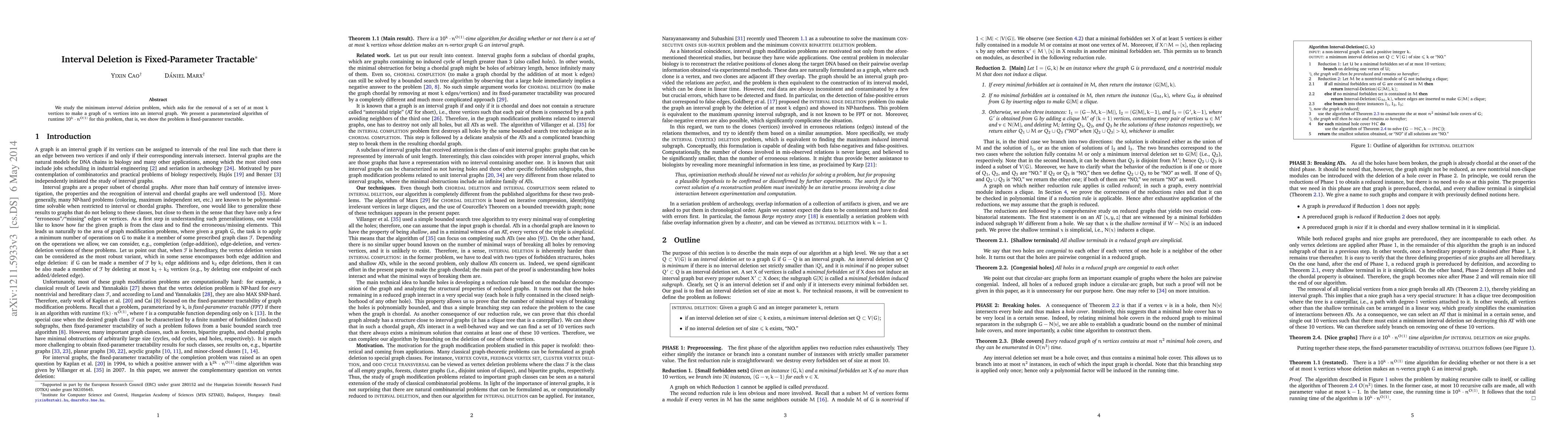 The paper presents a fixed-parameter tractable algorithm with a runtime of $10^k \cdot n^{O(1)}$ for the minimum interval deletion problem, demonstrating that the problem can be solved efficiently when parameterized by the number of vertices to be removed.