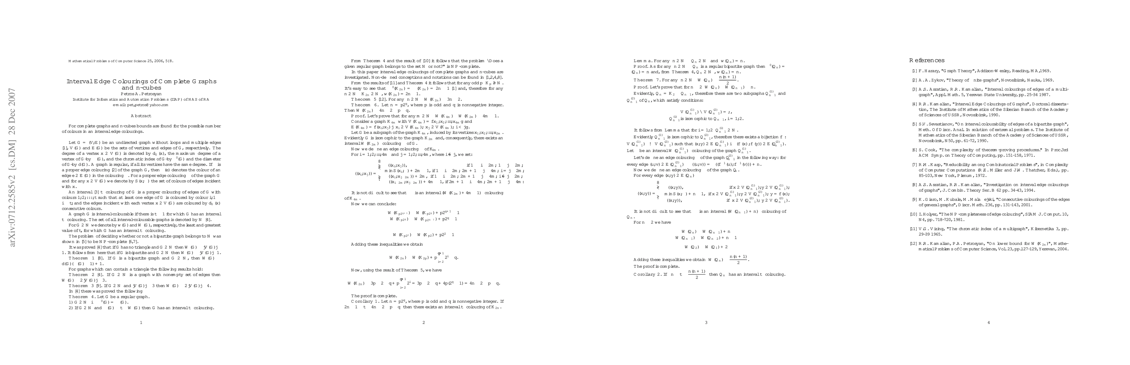 Summary: This paper investigates the bounds for the number of colours in interval edge colourings of complete graphs and n-cubes, providing insights into how these structures can be optimally coloured with respect to intervals. The findings offer new perspectives on the complexity and constraints of such colourings.