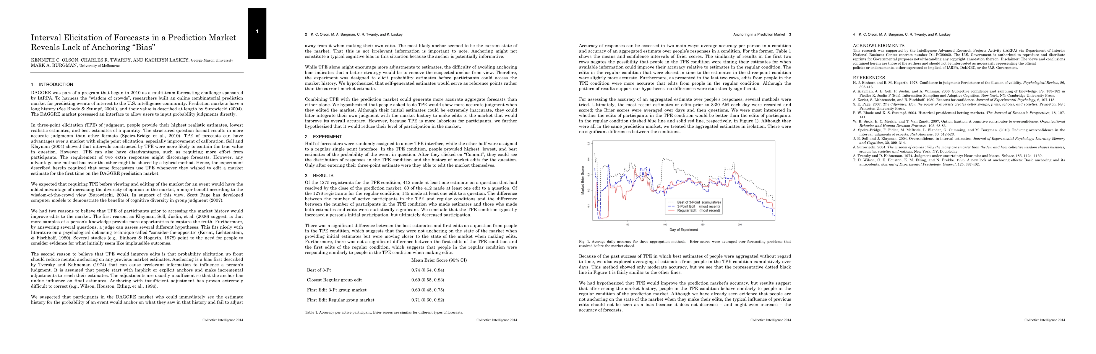 In an online prediction market, forecasters who could not see the current state of the market until they made their own separate estimates moved their estimates closer to the market forecast when the current state of the market became known. Their first edits to the market forecast were very similar to the first edits of forecasters who could always see the current state of the market, and forecasters in both conditions had similar accuracy. These results suggest that our more elaborate forecast elicitation method might not improve forecasts and that any anchoring on the state of the market does not constitute an error in judgment.