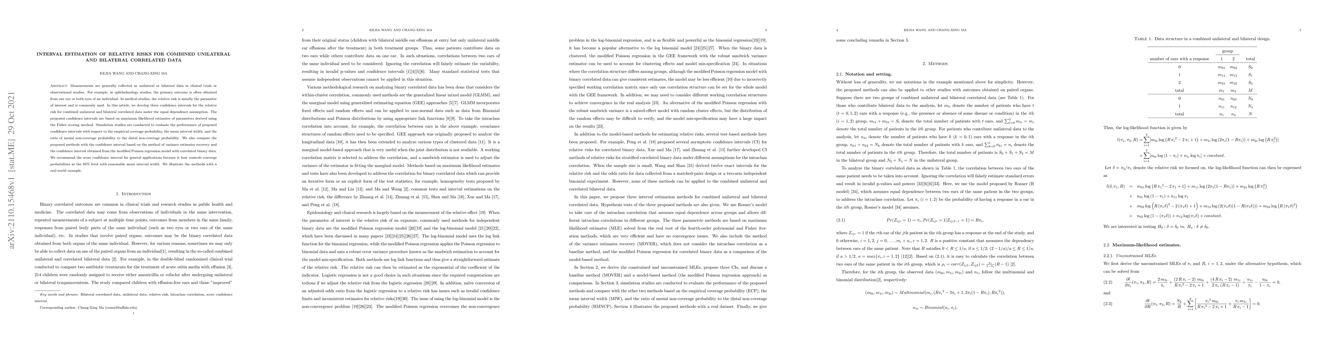This paper develops three confidence intervals for estimating relative risks in clinical trials using combined unilateral and bilateral correlated data. Simulation studies and comparisons suggest the score confidence interval is most effective, controlling coverage probabilities well and offering reasonable interval width.