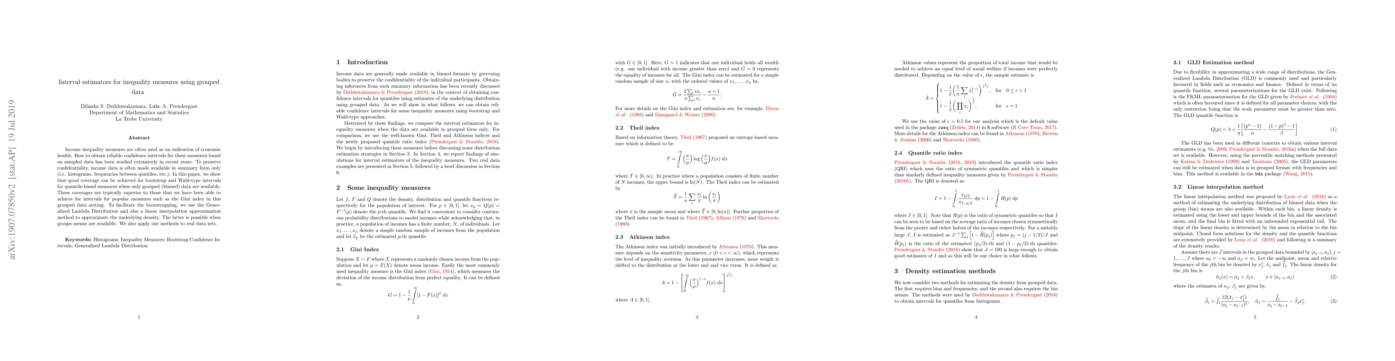 Income inequality measures are often used as an indication of economic health. How to obtain reliable confidence intervals for these measures based on sampled data has been studied extensively in recent years. To preserve confidentiality, income data is often made available in summary form only (i.e. histograms, frequencies between quintiles, etc.). In this paper, we show that good coverage can be achieved for bootstrap and Wald-type intervals for quantile-based measures when only grouped (binned) data are available. These coverages are typically superior to those that we have been able to achieve for intervals for popular measures such as the Gini index in this grouped data setting. To facilitate the bootstrapping, we use the Generalized Lambda Distribution and also a linear interpolation approximation method to approximate the underlying density. The latter is possible when groups means are available. We also apply our methods to real data sets.