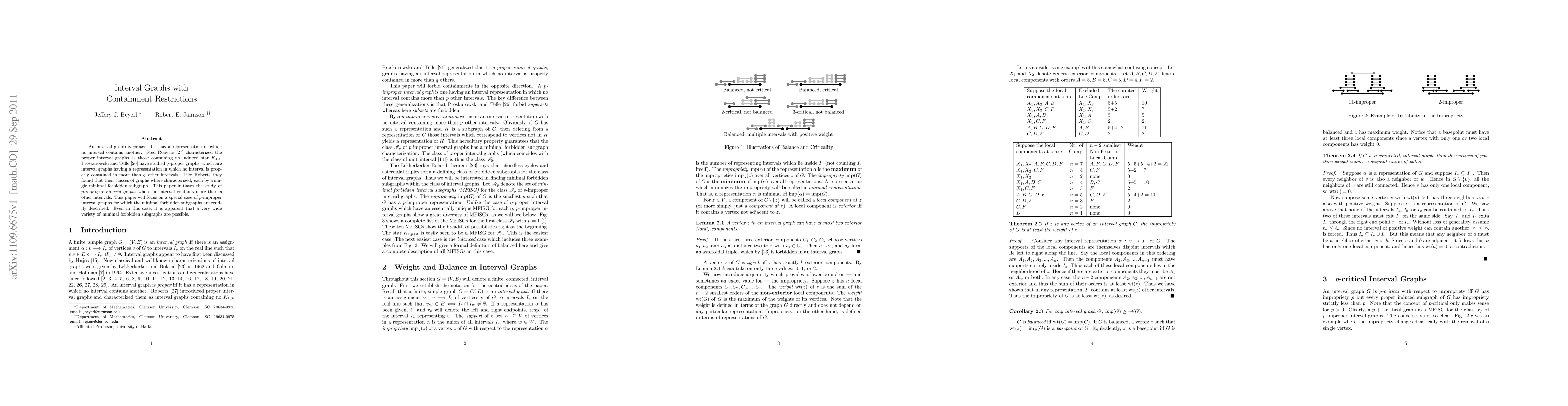 An interval graph is proper iff it has a representation in which no interval contains another. Fred Roberts characterized the proper interval graphs as those containing no induced star $K_{1,3}$. Proskurowski and Telle have studied $q$-proper graphs, which are interval graphs having a representation in which no interval is properly contained in more than $q$ other intervals. Like Roberts they found that their classes of graphs where characterized, each by a single minimal forbidden subgraph. This paper initiates the study of $p$-improper interval graphs where no interval contains more than $p$ other intervals. This paper will focus on a special case of $p$-improper interval graphs for which the minimal forbidden subgraphs are readily described. Even in this case, it is apparent that a very wide variety of minimal forbidden subgraphs are possible.