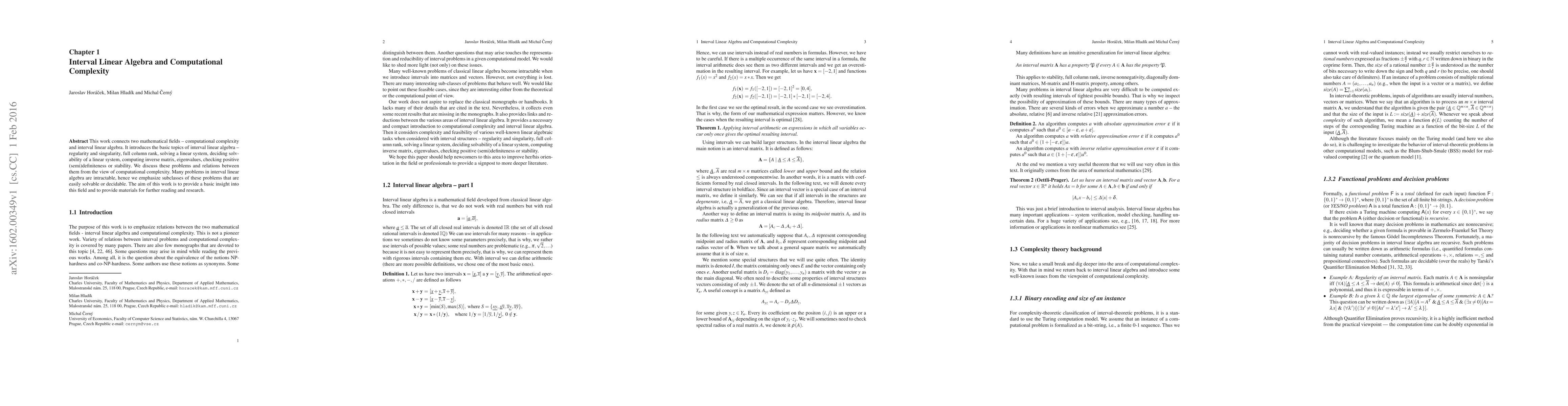 This paper explores the intersection of computational complexity and interval linear algebra, focusing on problems like matrix rank, solvability, and stability. It highlights tractable subclasses of otherwise intractable problems, offering foundational insights for further research.