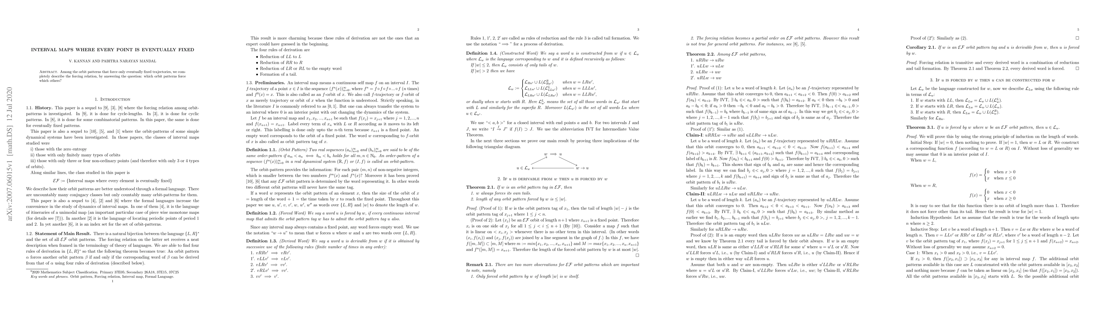 Among the orbit patterns that force only eventually fixed trajectories, we completely describe the forcing relation, by answering the question: which orbit patterns force which others?