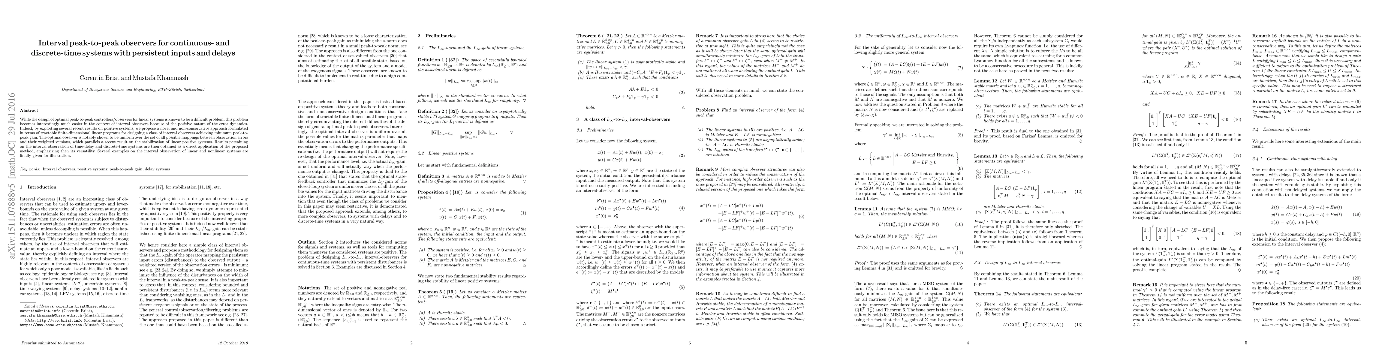 This paper proposes a novel approach for designing interval peak-to-peak observers for continuous- and discrete-time systems, leveraging positive system theory to formulate tractable linear programs. The proposed method is shown to be versatile and applicable to systems with persistent inputs and delays, with examples illustrating its effectiveness.