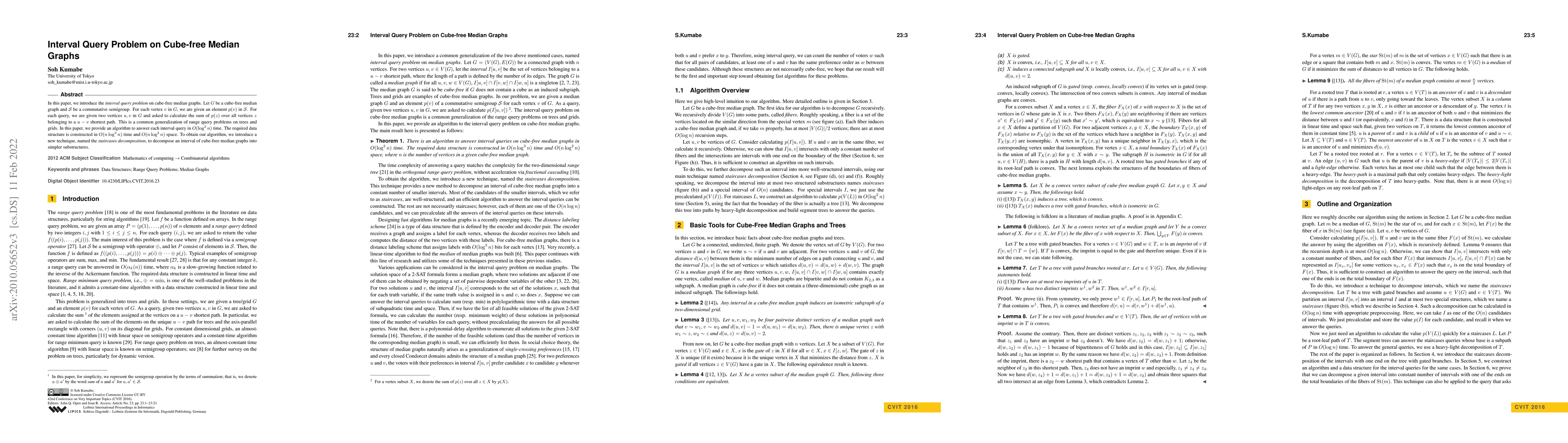 This paper presents an algorithm to solve the interval query problem on cube-free median graphs, achieving $O(\log^2 n)$ query time. The data structure is constructed in $O(n\log^3 n)$ time and uses $O(n\log^2 n)$ space, utilizing a novel "stairs decomposition" technique to simplify the problem.