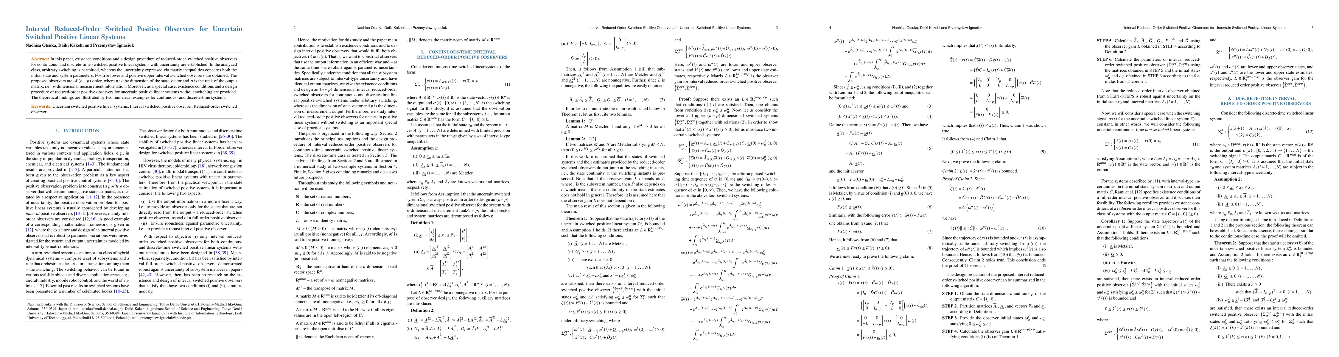 The development of positive lower and upper interval switched observers for uncertain switched positive linear systems, along with a design procedure for reduced-order observers.