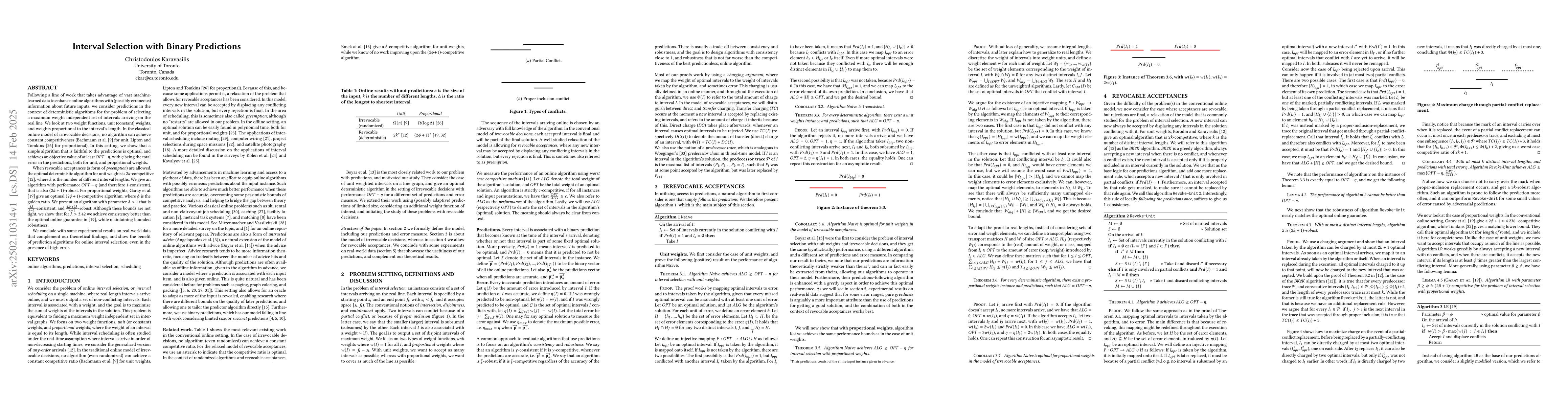 The research examines interval selection problems using binary predictions, analyzing both irrevocable and revocable acceptance models for unit and proportional weights. It proposes and analyzes algorithms that utilize these predictions to enhance competitiveness and robustness.