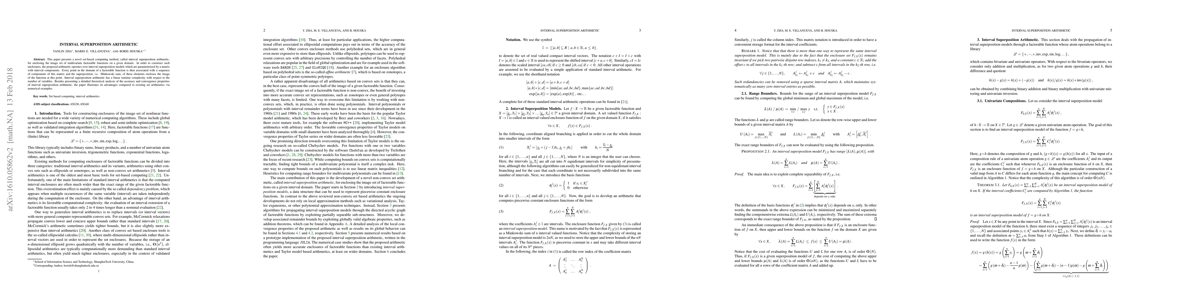 This paper presents a new method called interval superposition arithmetic for approximating the image set of multivariate functions, offering linear runtime complexity with promising advantages over existing methods.