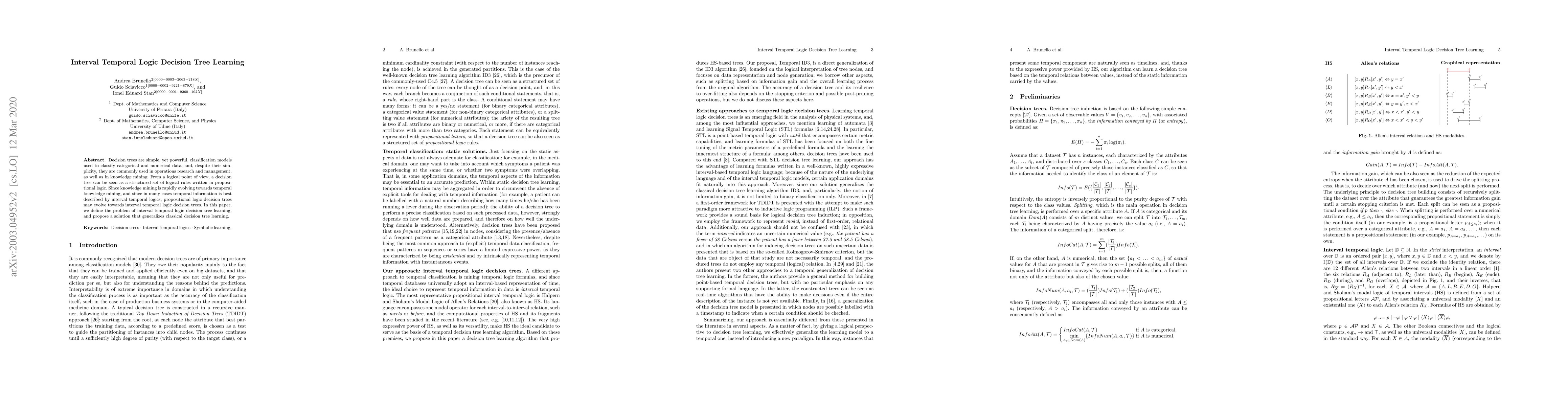 Decision trees are simple, yet powerful, classification models used to classify categorical and numerical data, and, despite their simplicity, they are commonly used in operations research and management, as well as in knowledge mining. From a logical point of view, a decision tree can be seen as a structured set of logical rules written in propositional logic. Since knowledge mining is rapidly evolving towards temporal knowledge mining, and since in many cases temporal information is best described by interval temporal logics, propositional logic decision trees may evolve towards interval temporal logic decision trees. In this paper, we define the problem of interval temporal logic decision tree learning, and propose a solution that generalizes classical decision tree learning.
