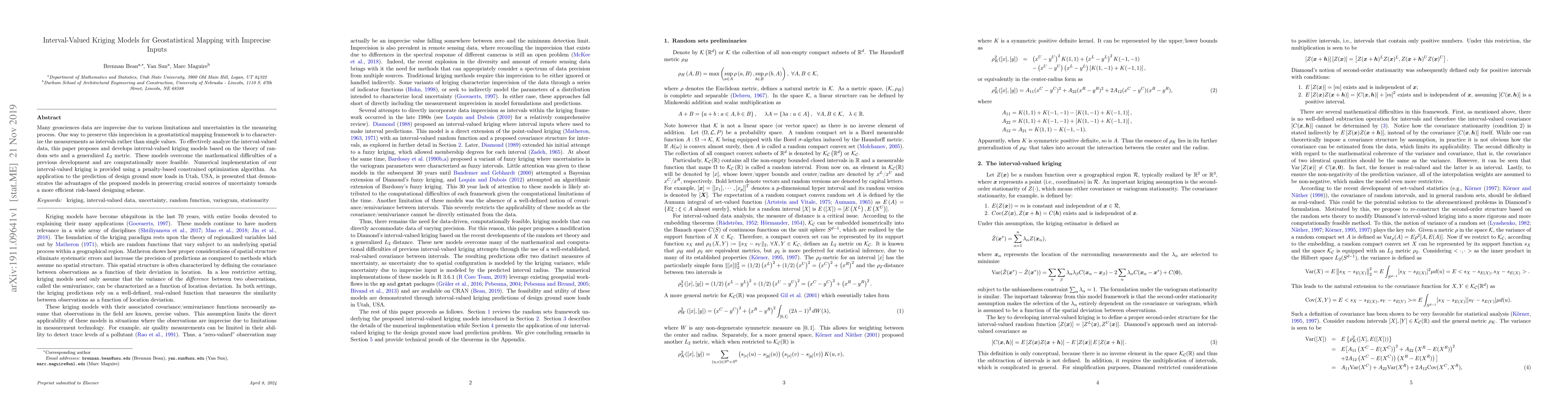 Researchers propose interval-valued kriging models for geostatistical mapping with imprecise inputs, overcoming mathematical difficulties and preserving uncertainty, to improve risk-based designing schemes.