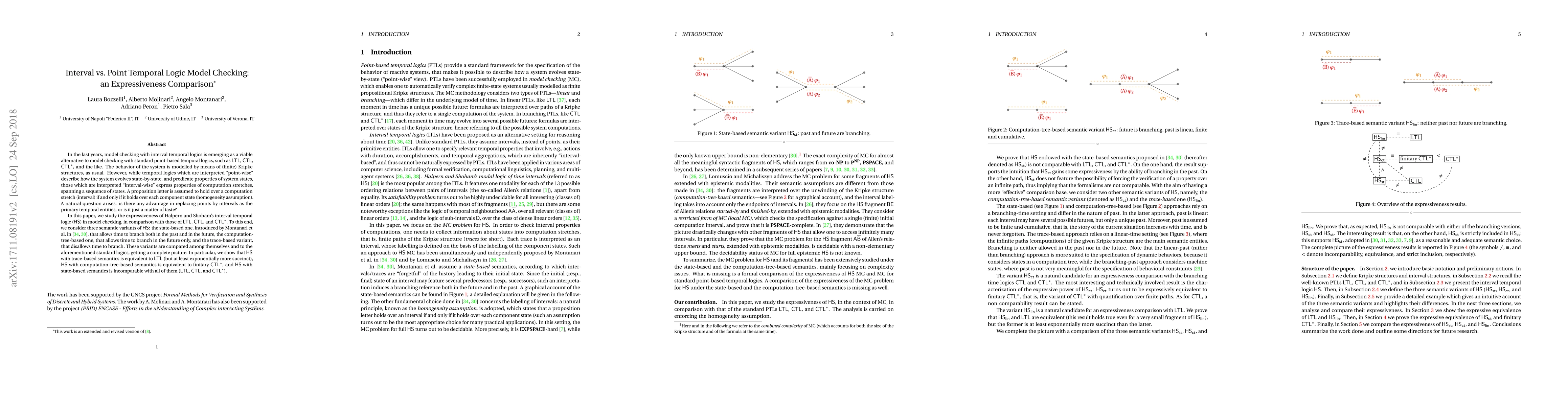 This research paper compares the expressiveness of interval temporal logic (HS) with point-based temporal logics (LTL, CTL, CTL*) in model checking. It reveals that HS with trace-based semantics equates to LTL but is more succinct, HS with computation-tree-based semantics matches finitary CTL*, and HS with state-based semantics is distinct from LTL, CTL, and CTL*.