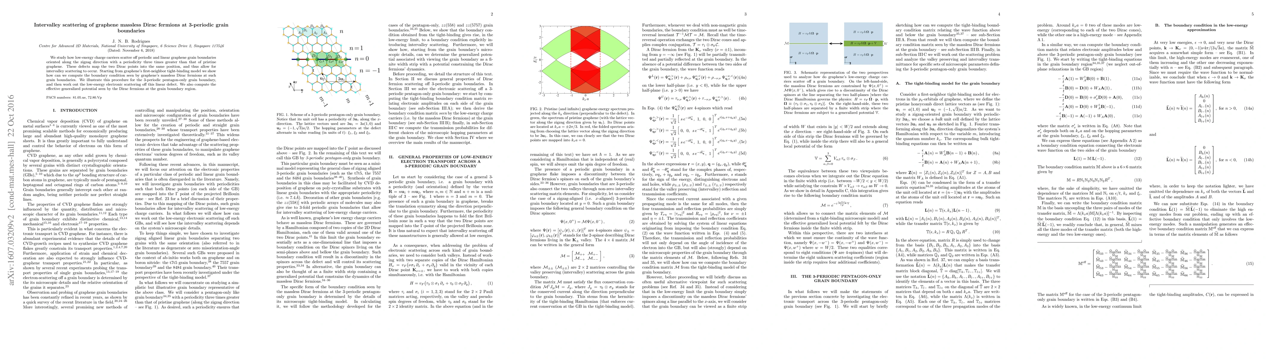 This research investigates the scattering behavior of massless Dirac fermions in graphene as they interact with 3-periodic zigzag grain boundaries, which enable intervalley scattering by mapping the Dirac points. The study derives boundary conditions and computes the effective potential experienced by fermions at these grain boundaries, focusing on the 3-periodic pentagon-only defect.
