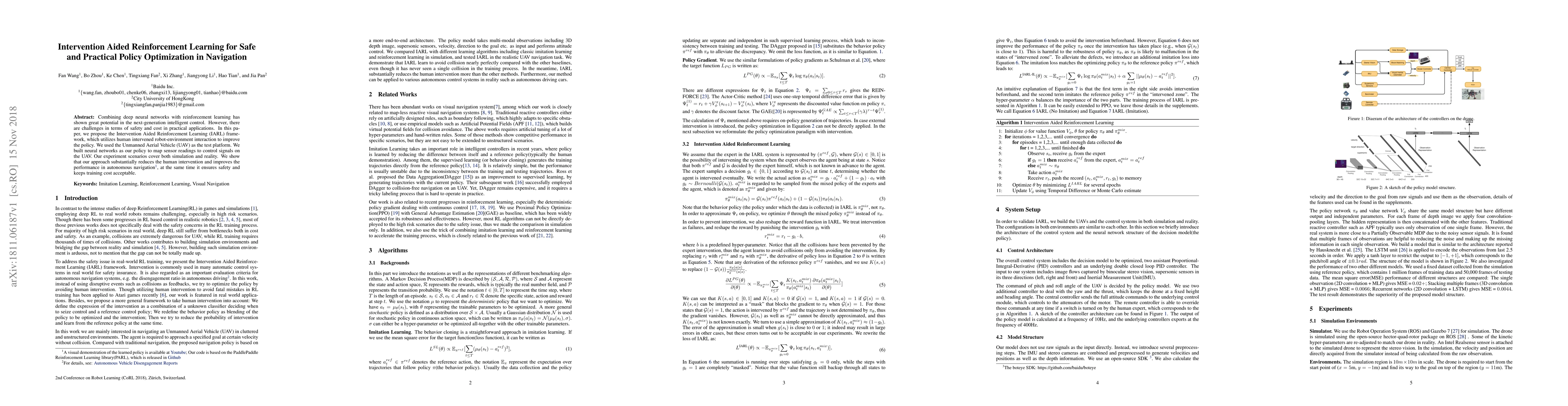 This paper proposes an Intervention Aided Reinforcement Learning (IARL) framework to enhance policy optimization in navigation, using human-assisted robot-environment interactions to improve UAV navigation policies. The approach significantly reduces human intervention while ensuring safety and maintaining cost-effective training.
