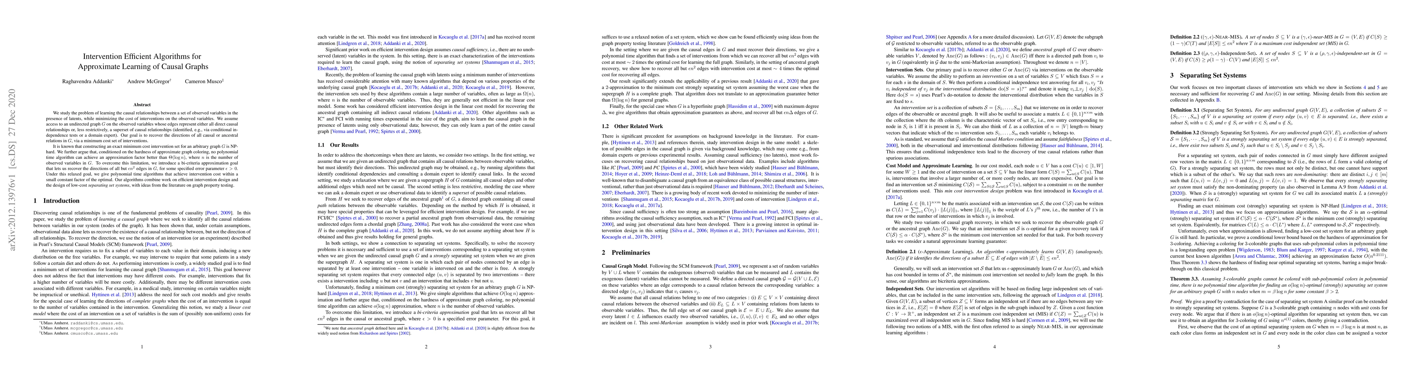 This paper addresses the challenge of efficiently learning causal relationships between observed variables while minimizing intervention costs, even in the presence of latent variables. The authors propose polynomial time algorithms that achieve near-optimal intervention costs under a bi-criteria approximation, allowing recovery of causal directions for nearly all edges in the graph.