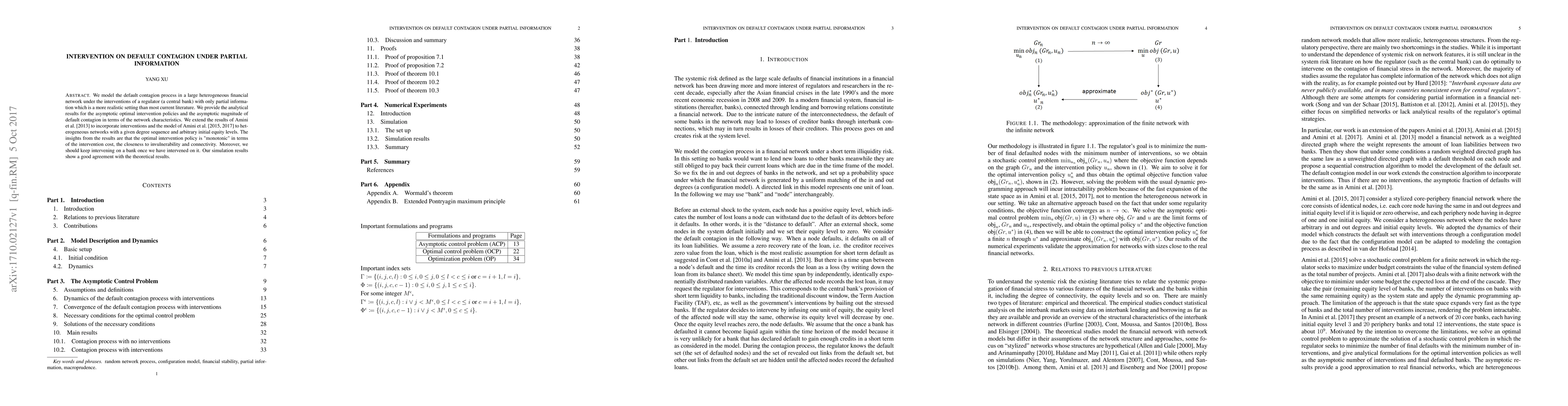 Researchers developed a model to analyze default contagion in financial networks under regulatory interventions with partial information, finding that optimal policies prioritize intervention cost and network characteristics.