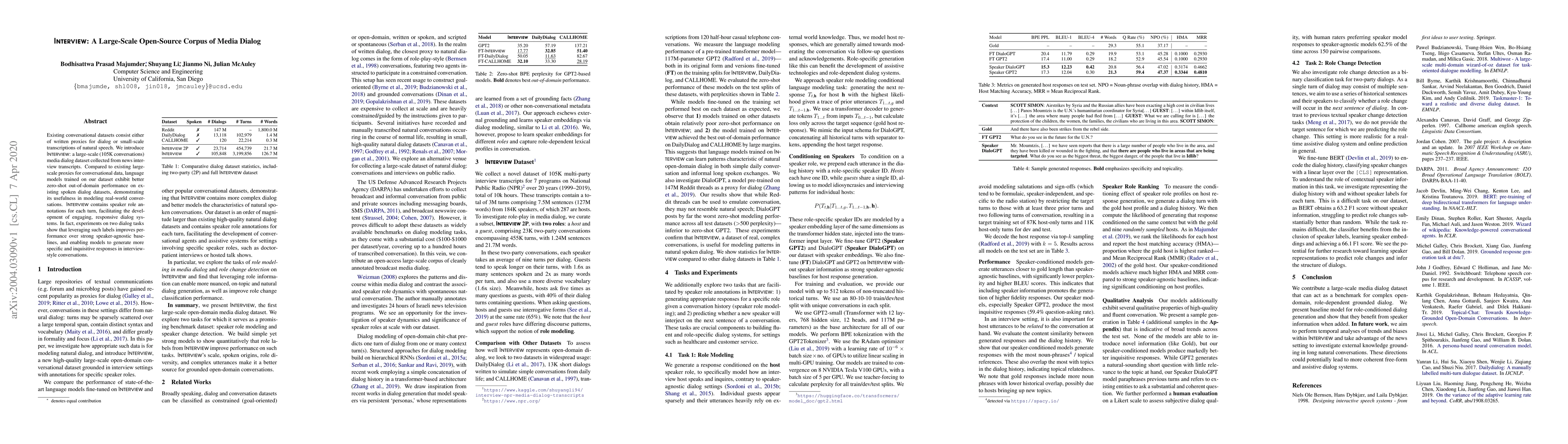 The "Interview" dataset is a large-scale open-source corpus of 105K media dialog conversations from news interview transcripts, offering better zero-shot performance for language models compared to existing datasets. It includes speaker role annotations, which enhance dialog system performance and enable more specific responses.