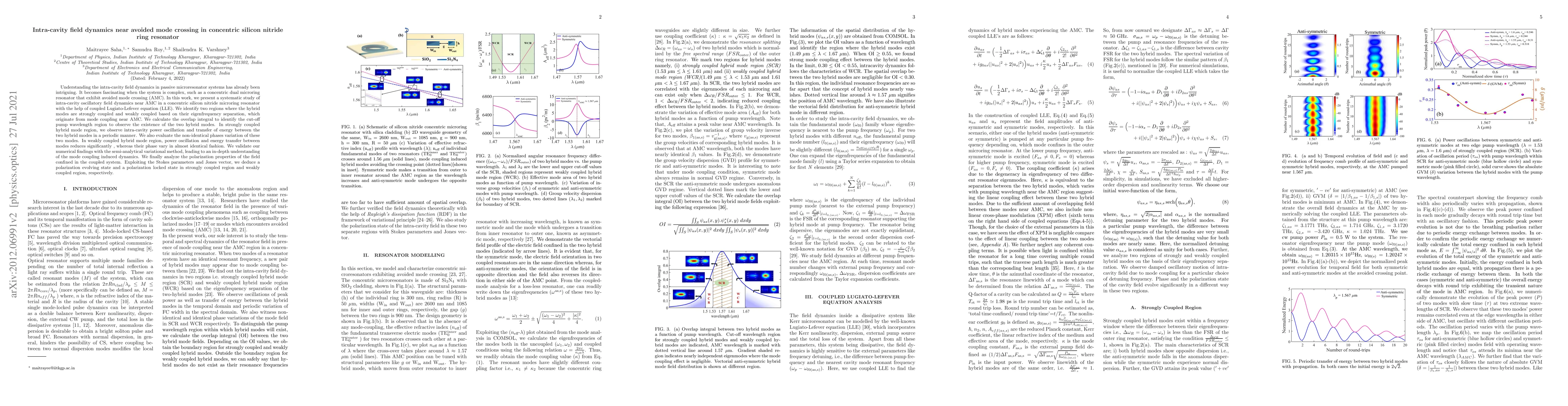 This paper investigates the intra-cavity field dynamics in a concentric silicon nitride ring resonator near avoided mode crossing, identifying weakly and strongly coupled regions based on mode coupling effects. Numerical and semi-analytical methods reveal periodic power oscillations and phase variations in the weakly coupled region, while the strongly coupled region exhibits reduced coupling and more identical mode characteristics.