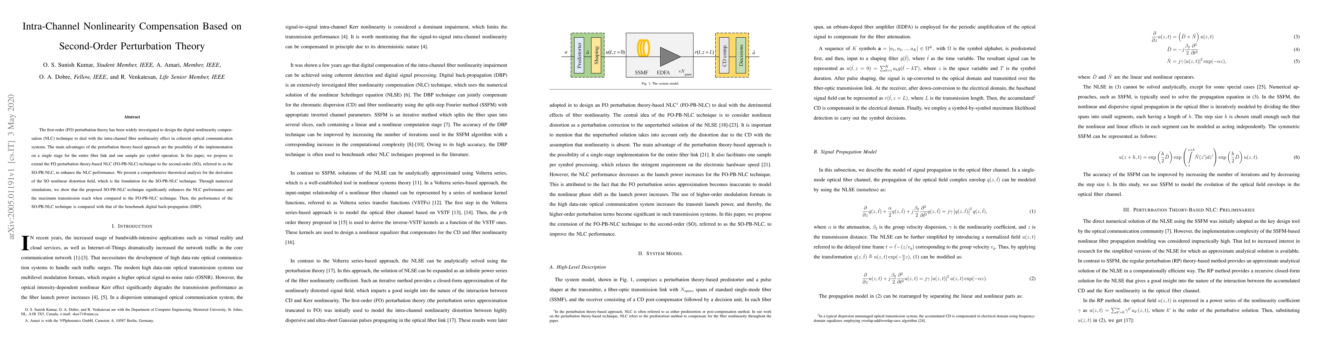 This paper proposes a second-order perturbation theory-based nonlinearity compensation technique (SO-PB-NLC) to enhance intra-channel fiber nonlinearity effects in coherent optical communication systems, significantly improving performance over first-order methods and benchmark digital back-propagation.