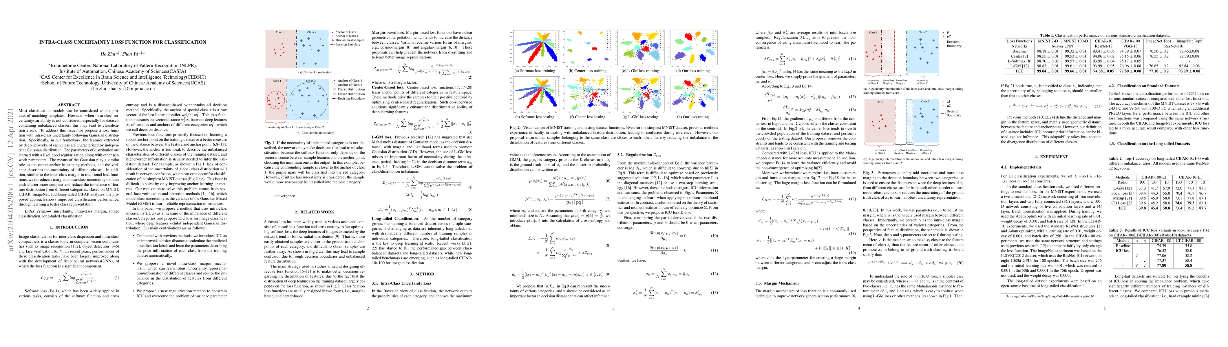 A new loss function is proposed to improve classification performance by considering intra-class uncertainty, leading to better class representation and improved accuracy on datasets like MNIST, CIFAR, ImageNet, and Long-tailed CIFAR.