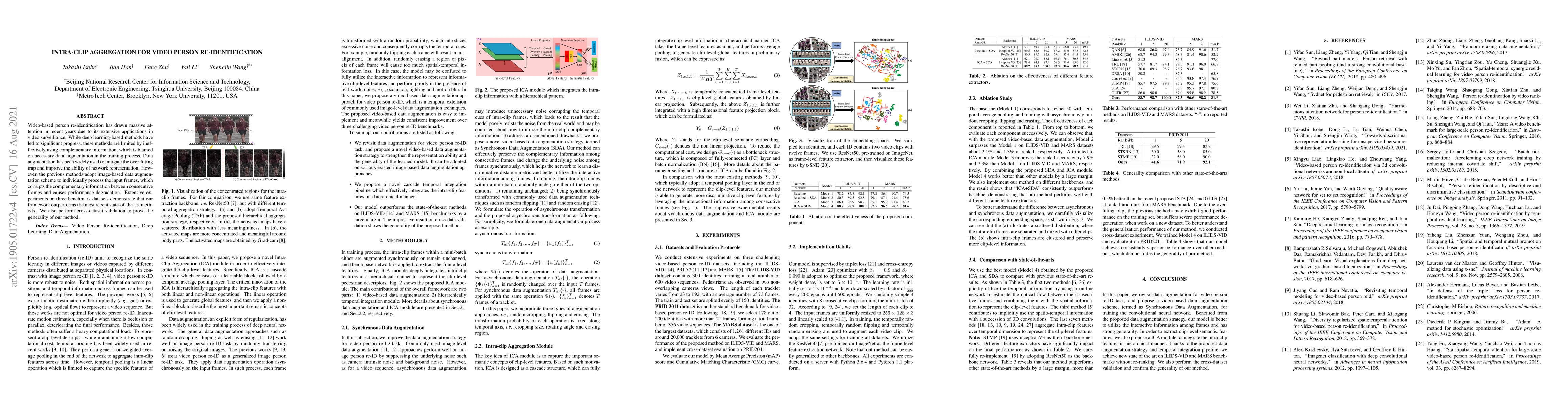 This paper proposes an intra-clip aggregation method for video person re-identification, addressing the issue of data augmentation that disrupts frame-to-frame information. The new approach outperforms existing state-of-the-art methods, as demonstrated by extensive experiments and cross-dataset validation.