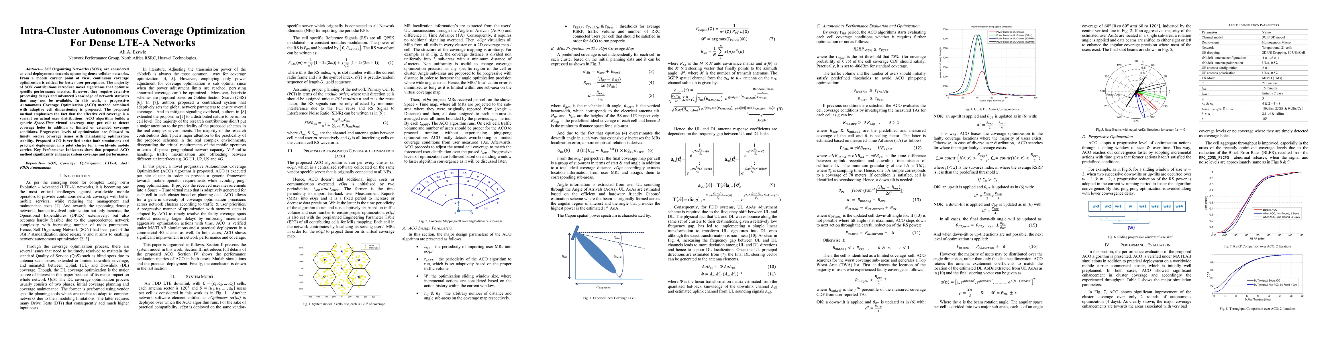 Self Organizing Networks (SONs) are considered as vital deployments towards upcoming dense cellular networks. From a mobile carrier point of view, continuous coverage optimization is critical for better user perceptions. The majority of SON contributions introduce novel algorithms that optimize specific performance metrics. However, they require extensive processing delays and advanced knowledge of network statistics that may not be available. In this work, a progressive Autonomous Coverage Optimization (ACO) method combined with adaptive cell dimensioning is proposed. The proposed method emphasizes the fact that the effective cell coverage is a variant on actual user distributions. ACO algorithm builds a generic Space-Time virtual coverage map per cell to detect coverage holes in addition to limited or extended coverage conditions. Progressive levels of optimization are followed to timely resolve coverage issues with maintaining optimization stability. Proposed ACO is verified under both simulations and practical deployment in a pilot cluster for a worldwide mobile carrier. Key Performance Indicators show that proposed ACO method significantly enhances system coverage and performance.