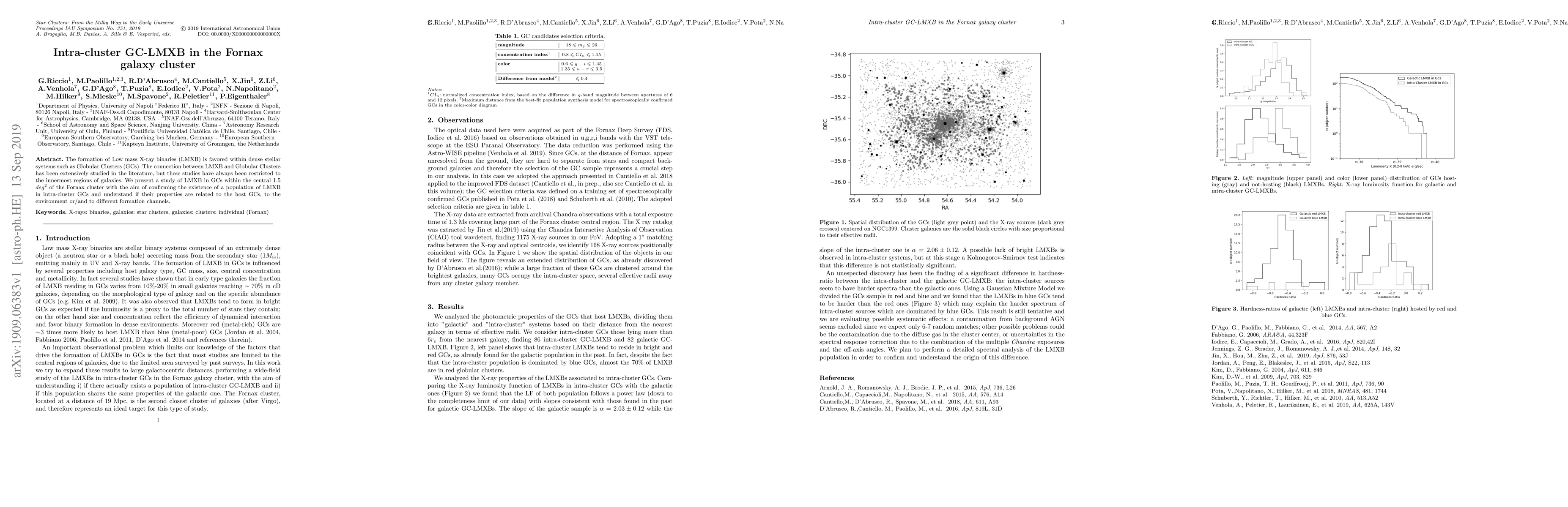 A study found a population of Low mass X-ray binaries in Globular Clusters within the Fornax galaxy cluster, offering insights into their formation channels and relation to host clusters.