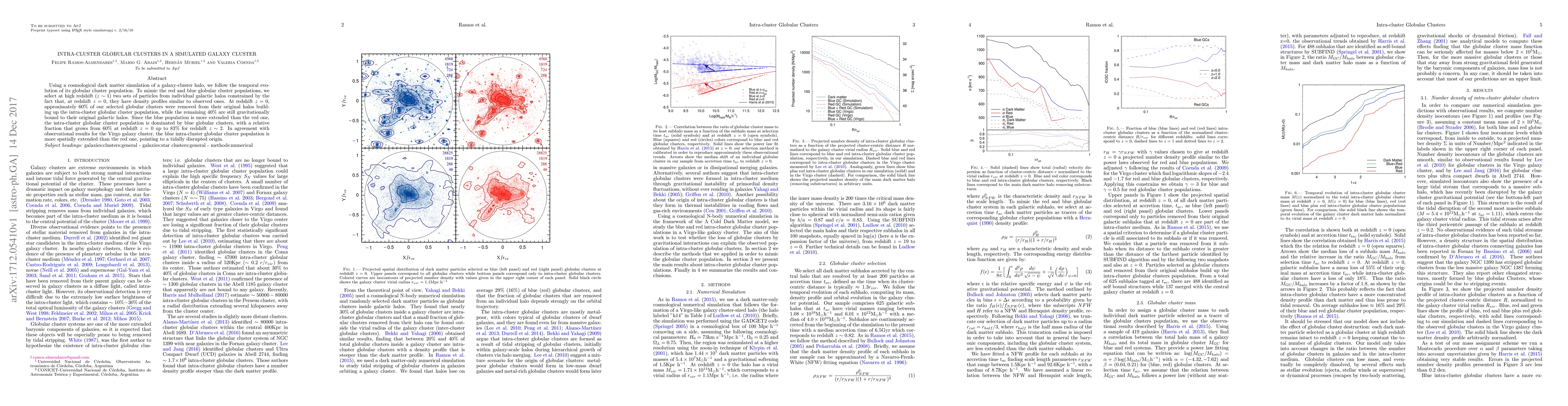 This study uses a cosmological simulation to track the evolution of globular clusters within a galaxy cluster, finding that 60% of clusters are now intra-cluster, with the blue population dominating due to its greater spatial extent and tidal disruption. The blue intra-cluster population is more extended than the red, mirroring observations of the Virgo cluster.